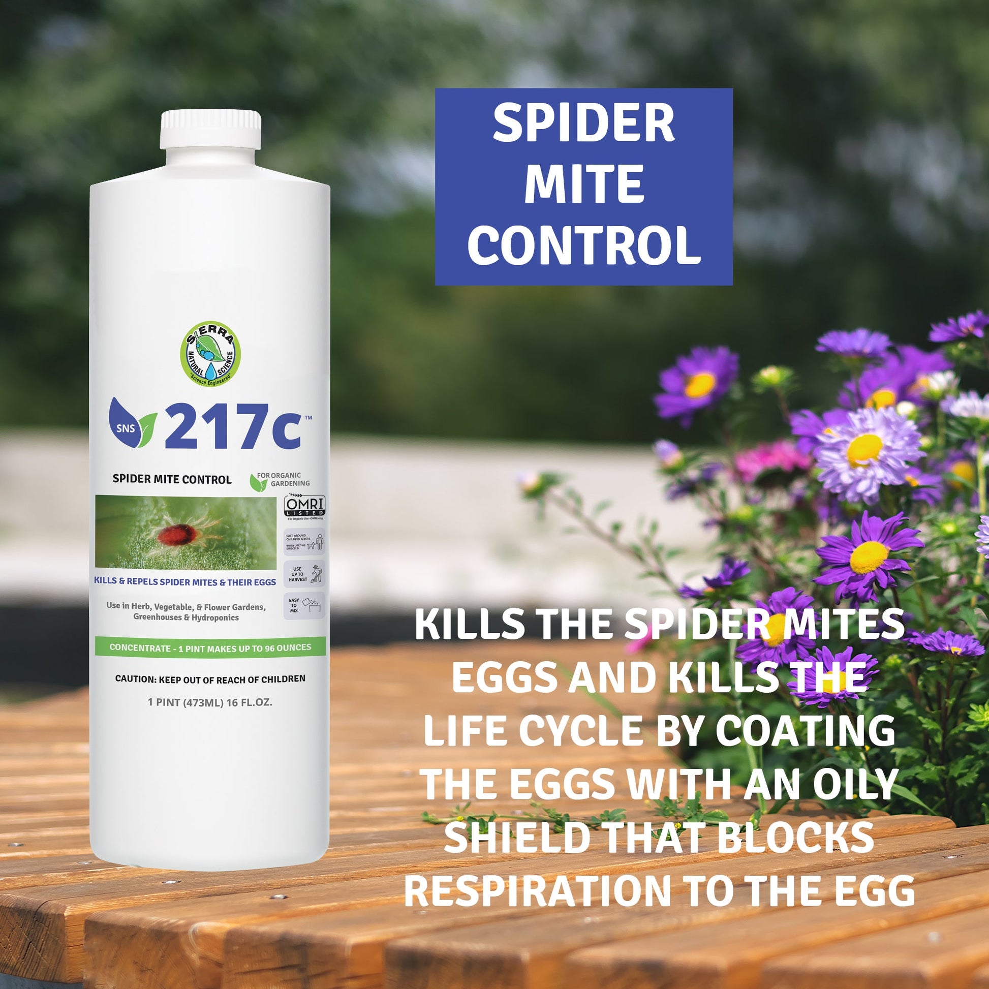 217C's unique formula works by providing a barrier which is harmless to the plant, but fatal to the mites. Spider mites destroy plant cells by sucking out their contents and 217C unique formula works by providing a barrier which is harmless to the plant, but fatal to the mites.