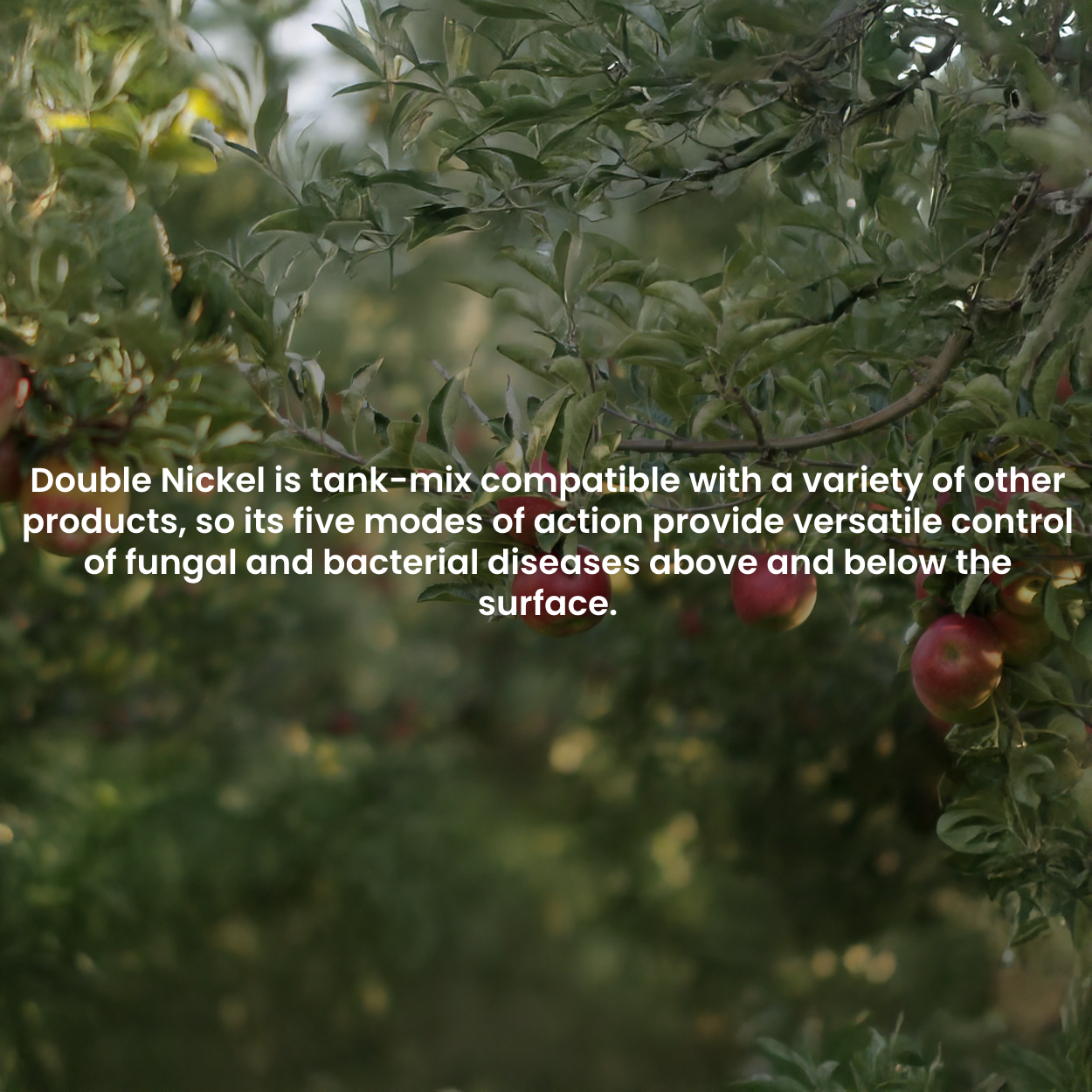 Double Nickel has proven efficacy in the treatment of more than 90 diseases in over 74 different crops or ornamentals from research of 700+ lab and field trials. It is NOP approved, OMRI listed, residue exempt and made in the USA, and is not harmful to beneficials.