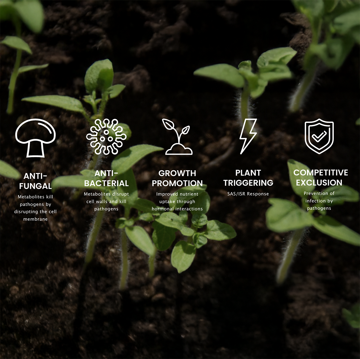 Broad spectrum preventative biofungicide for control and suppression of fungal and bacterial plant diseases.